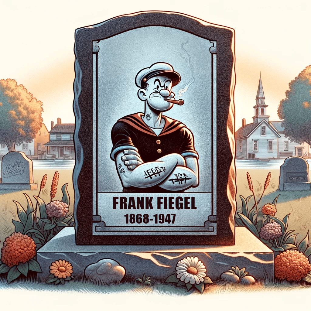 Po śmierci Franka, mieszkańcy Chester postanowili upamiętnić swojego niezwykłego sąsiada. Na nagrobku Franka Fiegela umieszczono wizerunek Popeye’a, aby każdy mógł wiedzieć, kto był prawdziwym bohaterem za tą komiksową legendą. Frank Fiegel zmarł 24 marca 1947. Początkowo został pochowany w nieoznakowanym grobie obok swojej matki. Dopiero w 1996 roku, dzięki staraniom oficjalnego Klubu Fanów Popeye’a, jego grób otrzymał właściwy nagrobek z wyrytym wizerunkiem Popeye’a z 1929 roku. Ten gest miał na celu oddanie hołdu człowiekowi, który swoim życiem i charakterem zainspirował jedną z najbardziej rozpoznawalnych postaci w popkulturze.