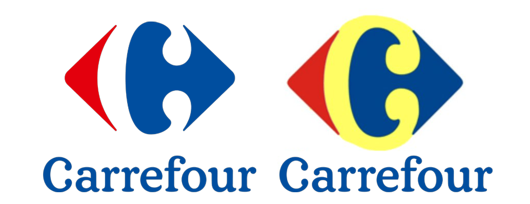 Przyjrzyjmy się bliżej logo Carrefour. Na pierwszy rzut oka widzimy dwie kolorowe strzałki, ale czy zauważyłeś, że kryje się w nim coś więcej? W centrum logo sprytnie ukryto literę 'C'!
